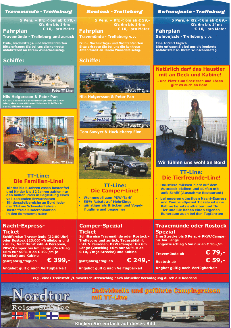 von TT-Line ab Travemünde und Rostock beginnt das Urlaubserlebnis schon in Deutschland. Mit der Ersparnis insbesondere für Camper